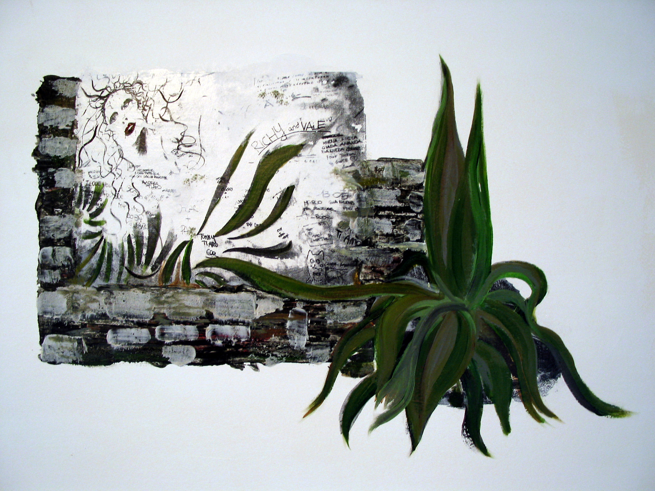 Using watercolors and print transfers, I juxtapose graffiti with natural forms and conventional art using color as a uniting theme.